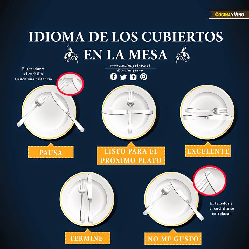 Hoy queremos mostrarles lo que significan las diferentes formas de reposas los cubiertos en el plato. Porque no es lo mismo decir que aún estamos disfrutando la comida a que no nos gustó.